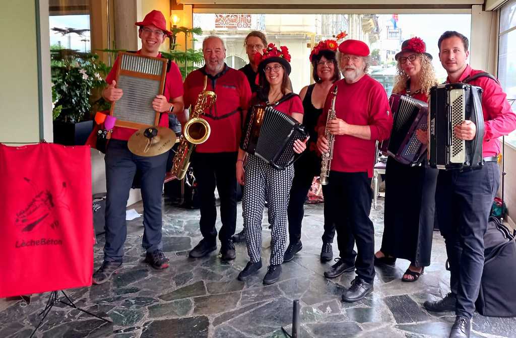 Célèbre groupe Suisse Genevois, pour une ambiance festive et variée. Tout de rouge vêtus, les membres jouent de divers instruments : wash-board, saxophone, accordéon, trompette. En format fanfare ou concert.