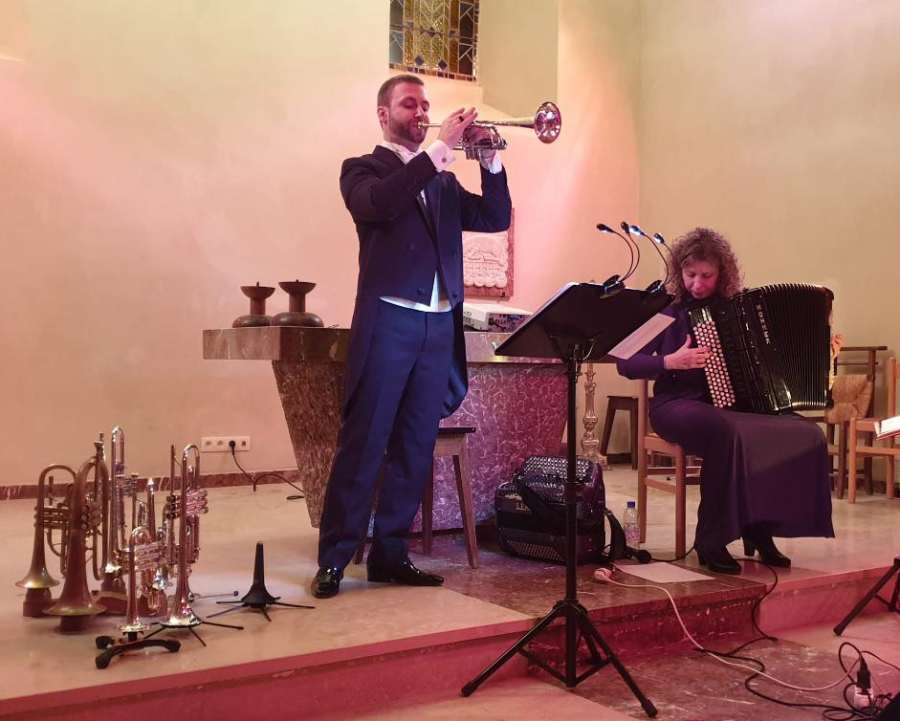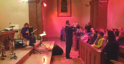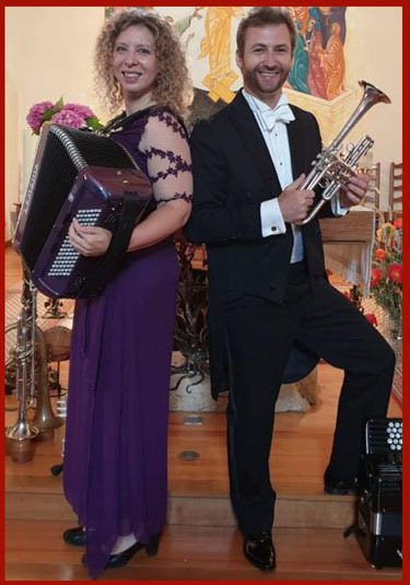 Spécialisé dans l'interprétation des plus belles chansons italiennes (allant de l'opéra à la variété), l'excellent David Mercier à la trompette et Elodie Genoud à l'accordéon classique, forment un beau duo pour ravir le public en concert...
