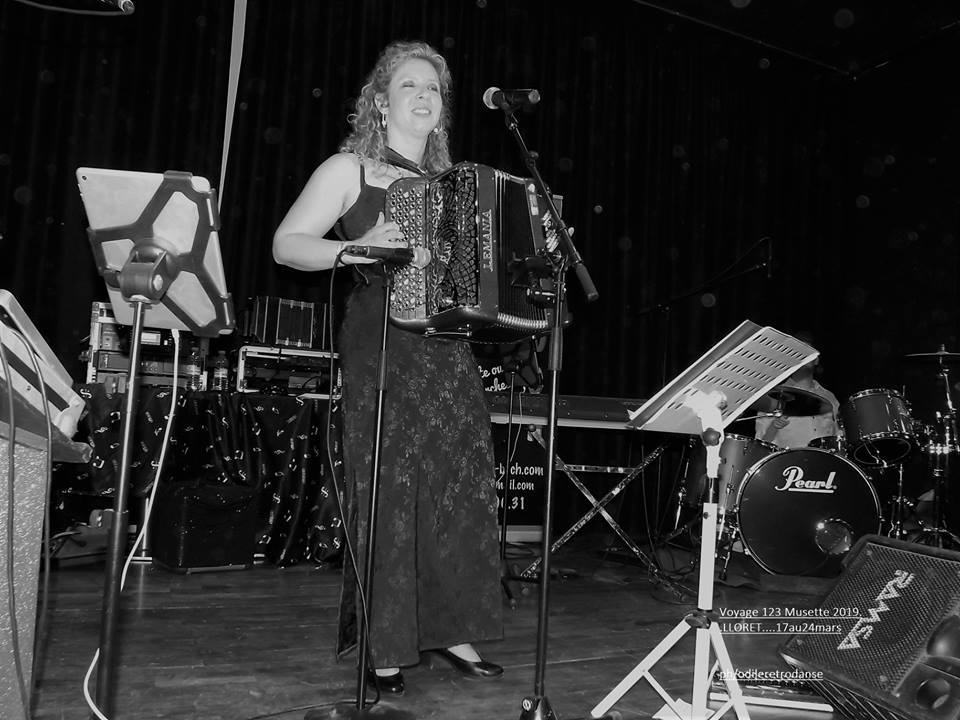 Elodie chante en jouant de son instrument, et a développé avec les années un vaste répertoire de chanshons françaises allant des années 30 aux années 80, avec les grands succès de Jo Dassin, Charles Aznavour, Edith Piaf, Michel Delpech, Gérard Lenormand, Dalida....